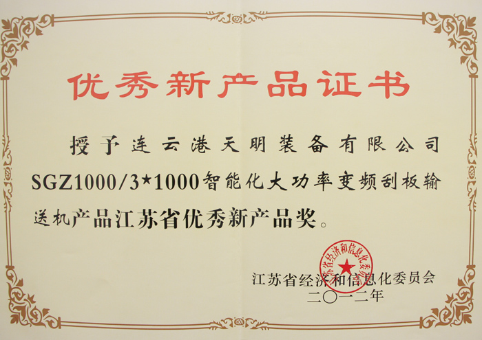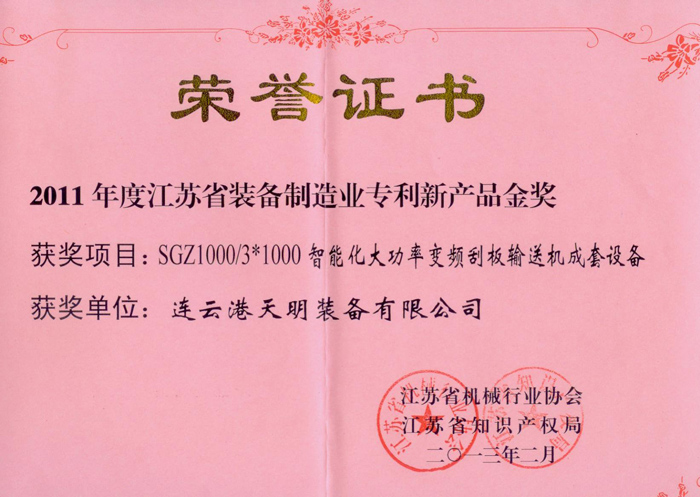 ● 2014年智能化大型变频刮板输送机成套装备承担江苏省重大科技成果产业化项目