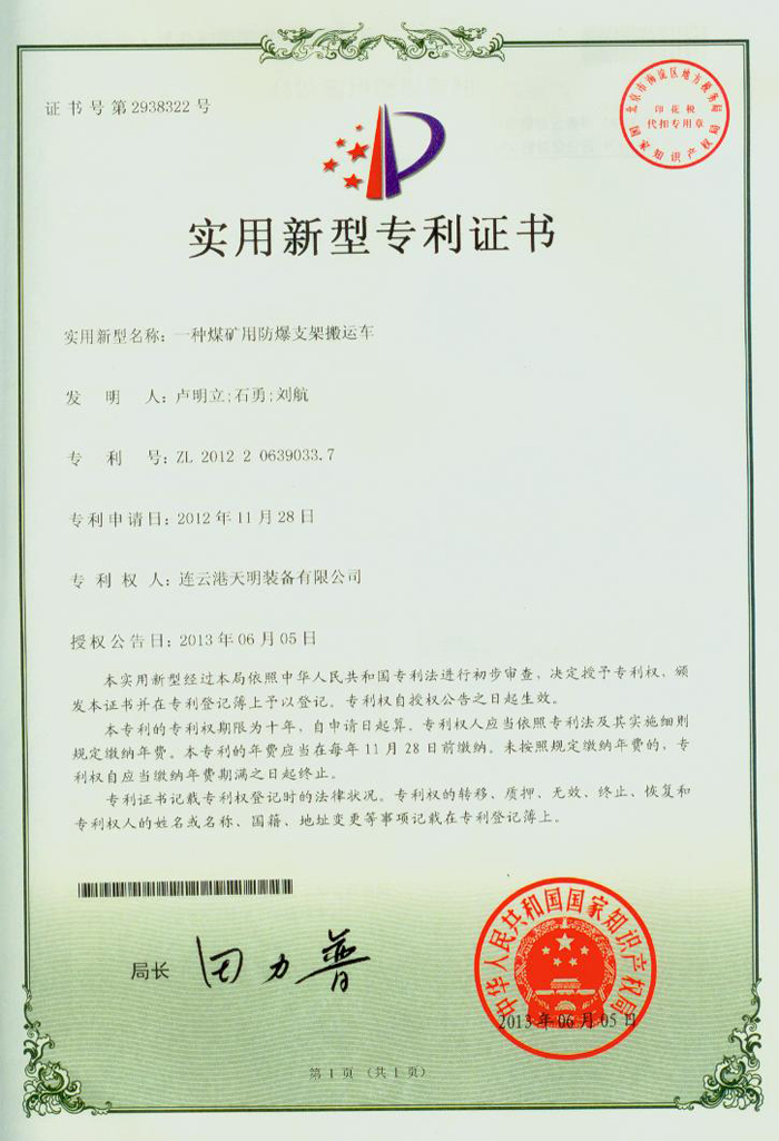 矿用井下重载动力平板车、大坡度支架搬运车等产品填补世界行业空白,具有完全自主知识产权,